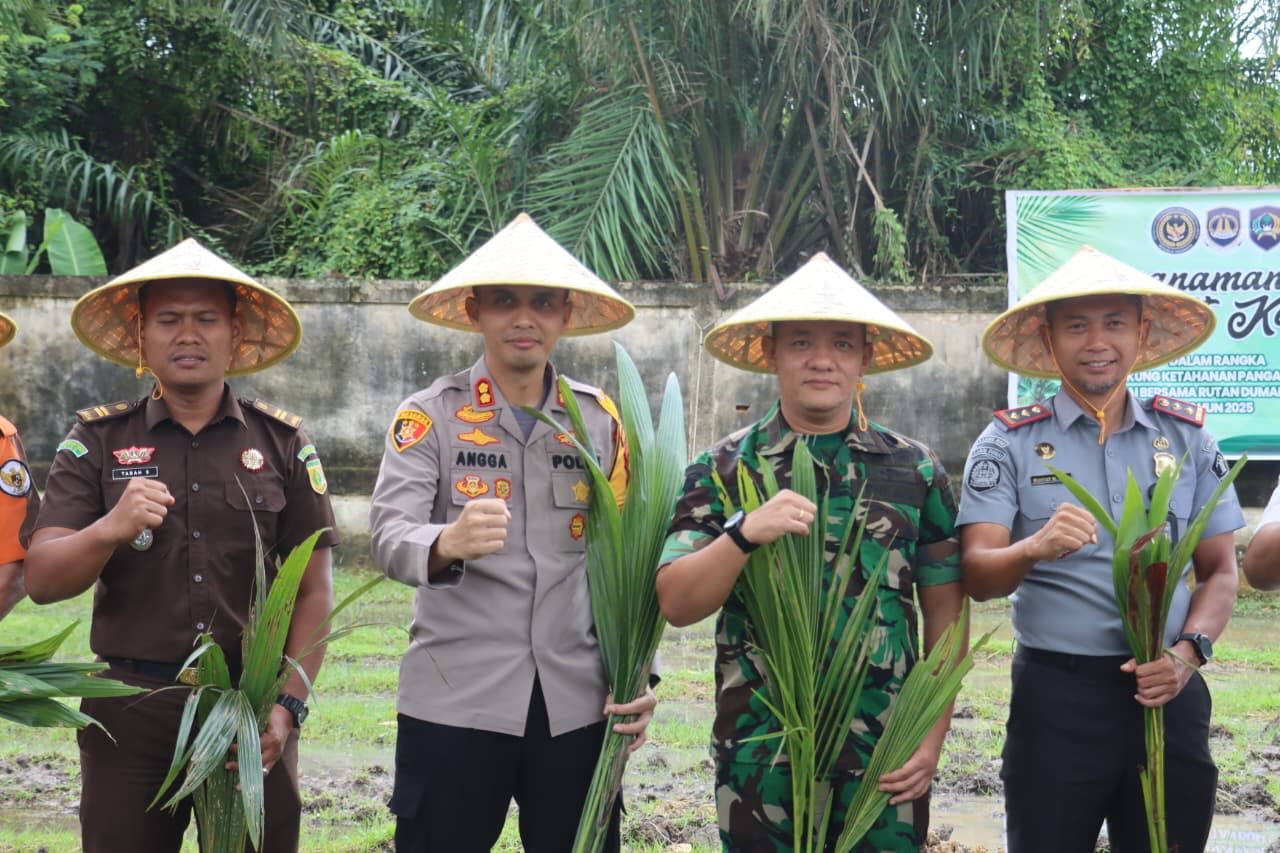 Acara dilanjutkan dengan penanaman bibit kelapa secara simbolis oleh para tamu undangan. Dimulai dari Kepala Kantor Imigrasi, lalu Kapolres Dumai, Danlanal Dumai, Dandim 0320 Dumai, dan para pejabat lainnya. Sesi foto bersama pun menjadi momen untuk mengabadikan semangat kebersamaan.
