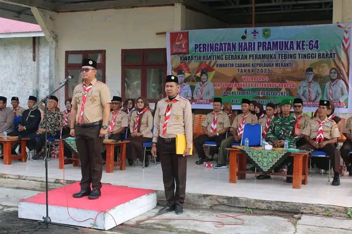Jaringan kepanduan di Kecamatan Tebing Tinggi Barat kembali mengukuhkan komitmen kebangsaan melalui gelaran Apel Bendera Hari Pramuka ke-64 yang berlangsung khidmat di Lapangan Kantor Camat.Sabtu (27/09/2025).