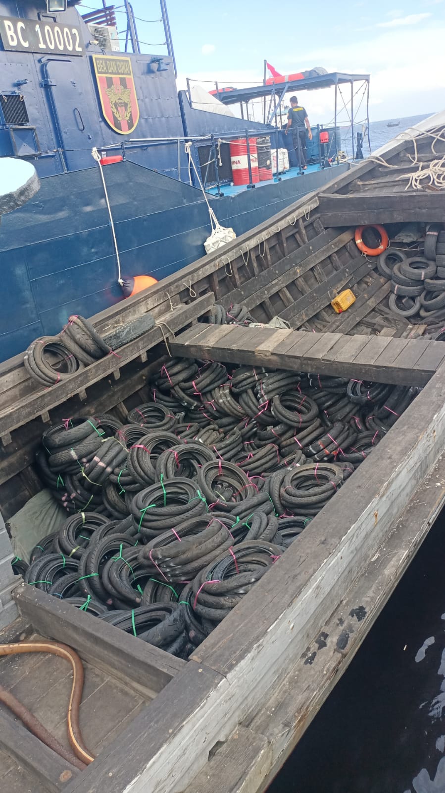 Penangkapan Ban Bekas 3.750 Pcs KM Harapan Jaya Dari Malasysia Menuju ke Perairan Pasir Selatan Rohil.