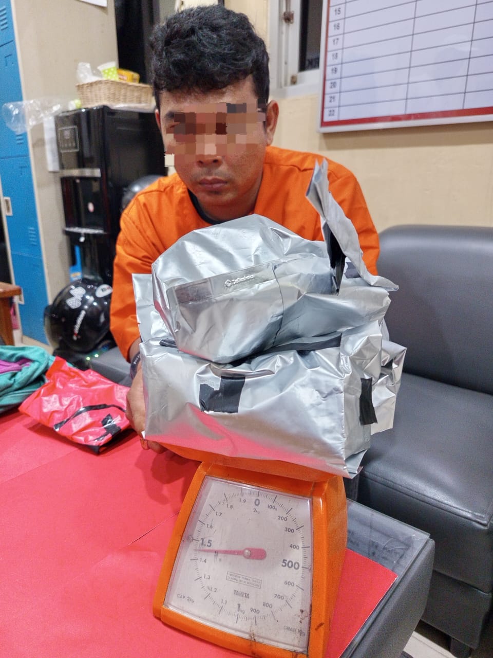 “Saat penggeledahan, kami menemukan tas berwarna pink berisi tiga bungkus sabu yang disembunyikan di bawah kursi penumpang. Dan hasil barang bukti yang berhasil kita amankan yakni 1,5 kilogram sabu (dikemas dalam 3 bungkus plastik silver), 1 bungkus plastik merah,1 tas berwarna pink hijau, 1 unit mobil Toyota Agya biru (BM 1813 NG) dan 1 unit handphone iPhone 11 berwarna hijau,” ungkap Kapolres.