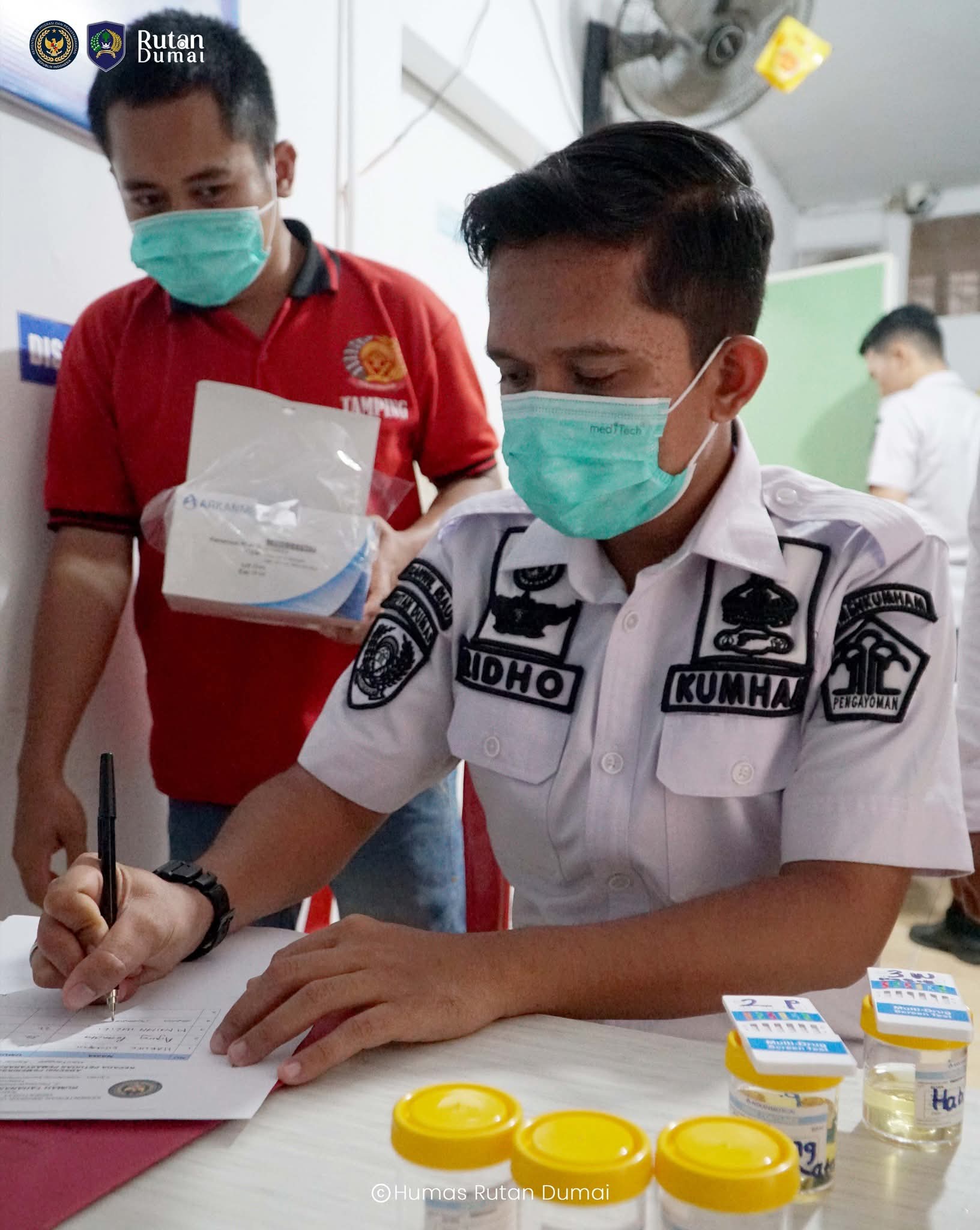 Dalam upaya mewujudkan lingkungan pemasyarakatan yang bersih dari penyalahgunaan narkoba, Rumah Tahanan Negara (Rutan) Kelas IIB Dumai melaksanakan kegiatan tes urine bagi pegawai dan warga binaan, Kamis (23/10).