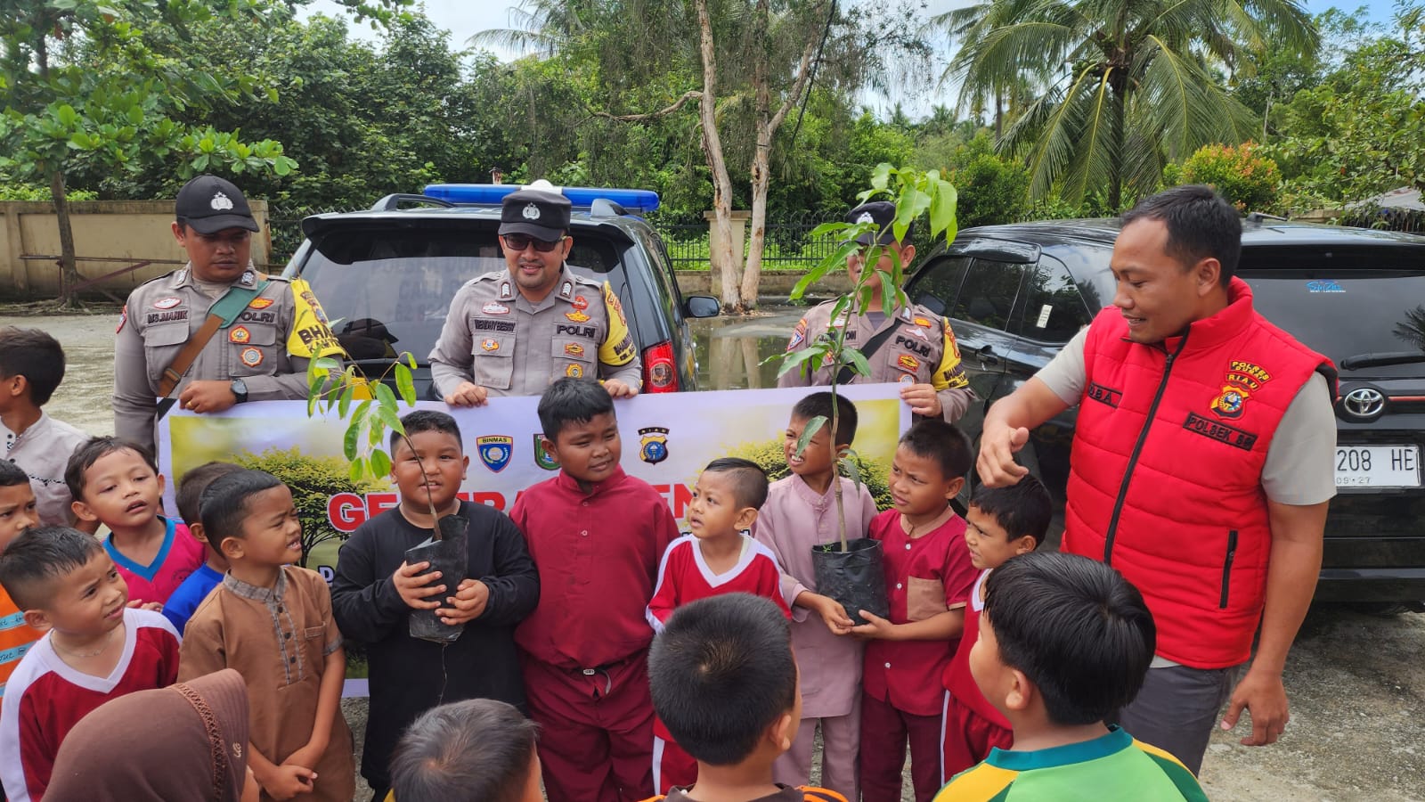 Polres Dumai melalui Polsek Sungai Sembilan melaksanakan kegiatan edukasi dan penanaman pohon dalam rangka program Green Policing di Sekolah Dasar (SD) Negeri 003 Kelurahan Bangsal Aceh, Kecamatan Sungai Sembilan, Kota Dumai, pada hari Jumat, 24 Oktober 2025.