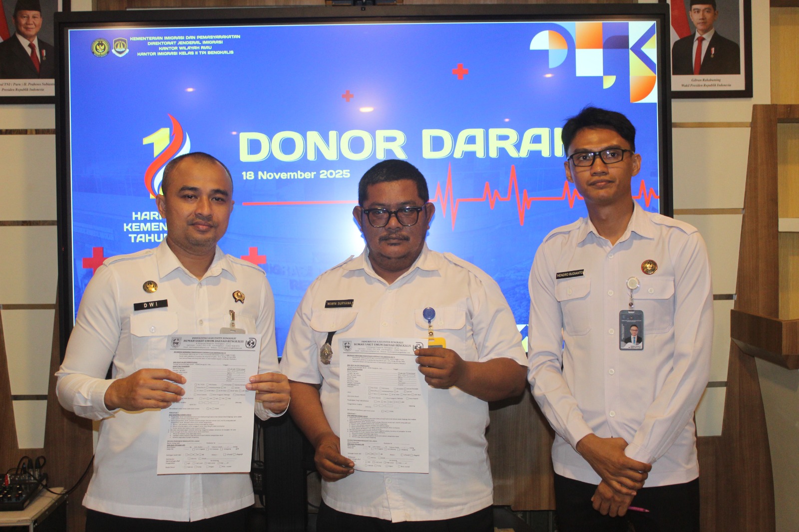 Dalam rangka memperingati Hari Bakti Kementerian Imigrasi dan Pemasyarakatan ke-1 Tahun 2025, Lembaga Pemasyarakatan (Lapas) Kelas IIA Bengkalis turut serta dalam kegiatan donor darah yang diselenggarakan di Kantor Imigrasi Kelas II TPI Bengkalis(18/11/2025).