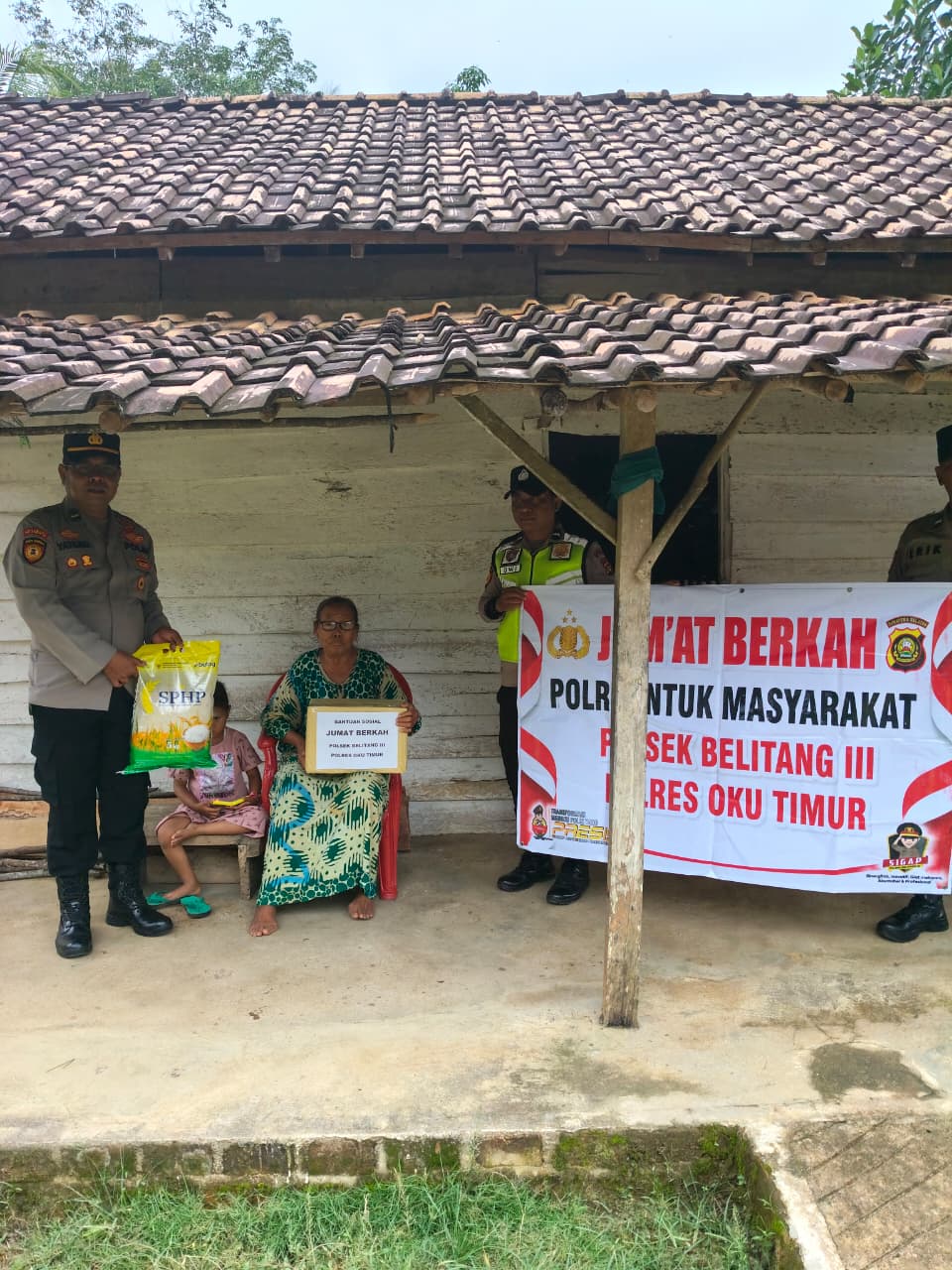 Belitang III, 13 Februari 2026 – Polsek Belitang III melaksanakan kegiatan Pemberian Bantuan Sosial (Bansos) Jumat Berkah kepada warga miskin di Desa Senumarga, Kecamatan Belitang III, Kabupaten OKU Timur. Kegiatan ini merupakan wujud kepedulian dan empati Kapolsek Belitang III terhadap warga masyarakat yang membutuhkan.