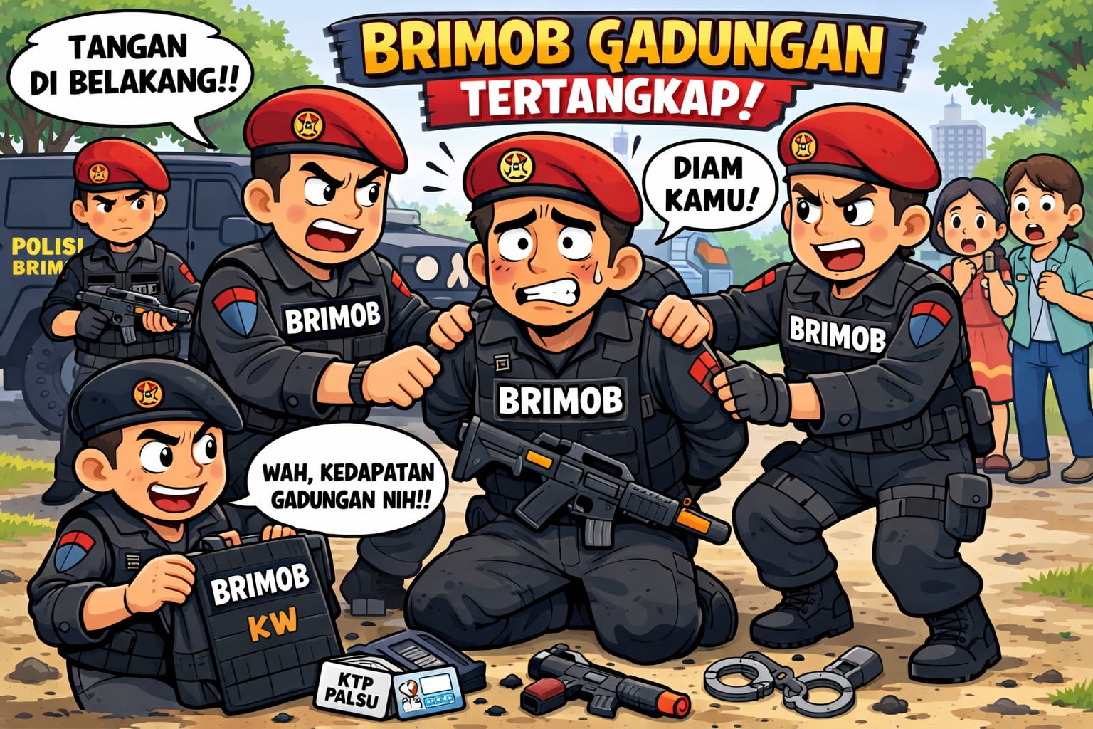 Selain atribut kepolisian, aparat turut mengamankan dua pucuk pistol jenis softgun, satu senjata laras panjang, serta sejumlah barang lain yang kini masih dalam proses pendalaman oleh penyidik. Seluruh barang bukti telah diamankan untuk kepentingan penyelidikan lebih lanjut.