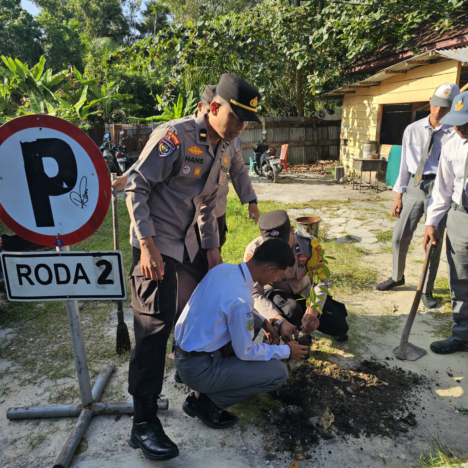 POLSEK DUMAI TIMUR TANAMKAN KESADARAN LINGKUNGAN MELALUI PROGRAM GREEN POLICING DI SMK PERMINYAKAN KOTA DUMAI