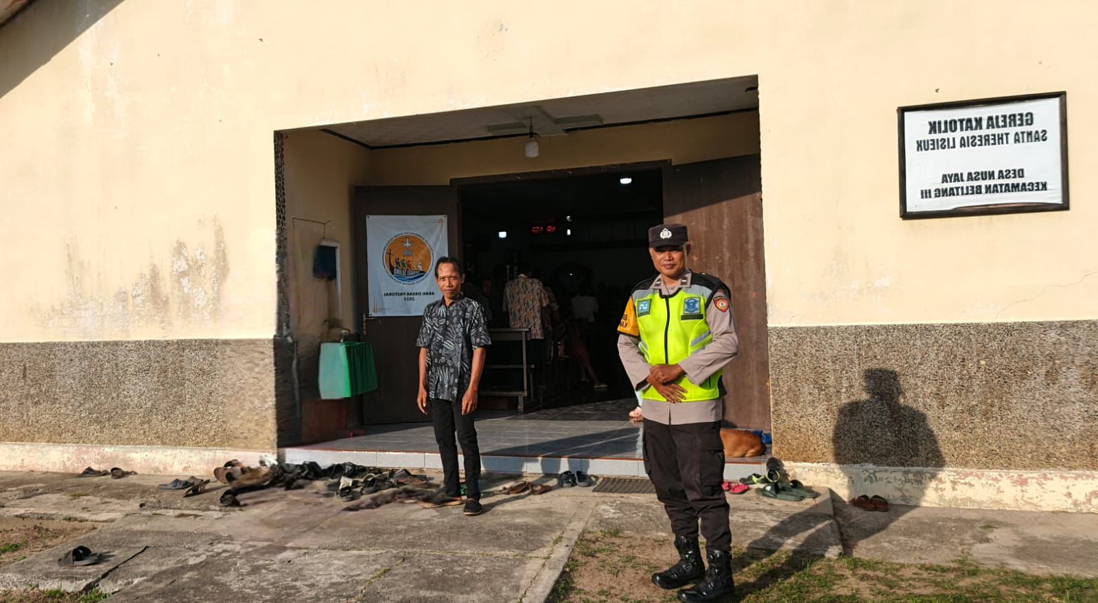 Personil Polsek Belitang III melaksanakan kegiatan pengamanan ibadah gereja